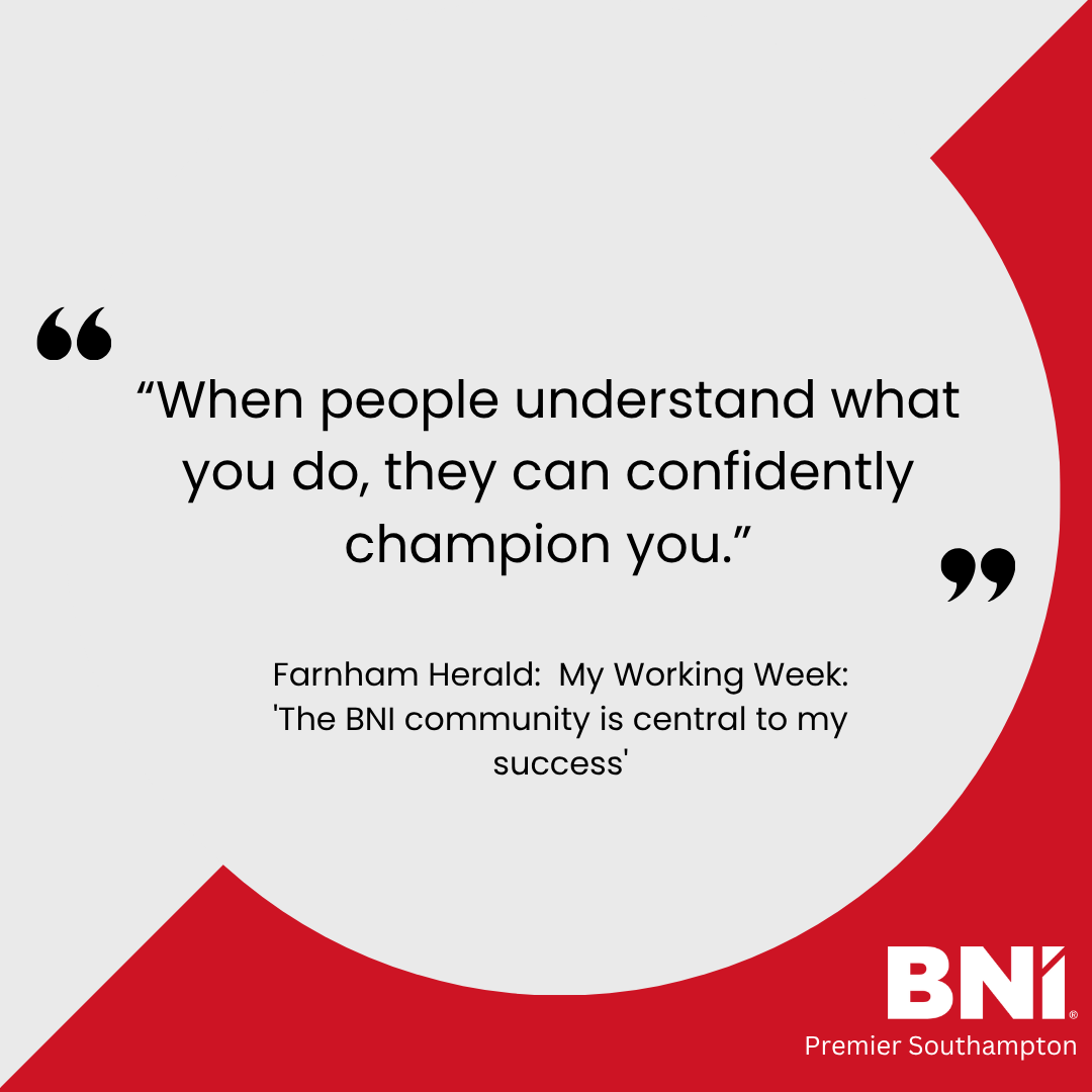 If BNI’s supportive ethos, which Donna has described, appeals to you, please do get in touch with me – alyson@bnihampshire.com. To give every member maximum value, we only allow one person from each trade or profession to join any given group, so let me introduce you to a chapter that has business to pass to you right now.